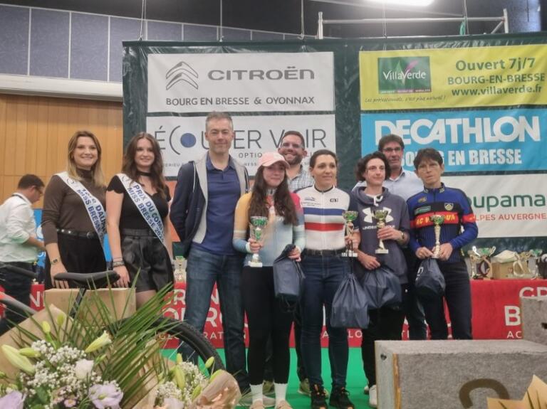 A Péronnas (01) à la cyclosportive "la Bisou" sur le circuit de 75 kms, Christine gagne dans sa catégorie.